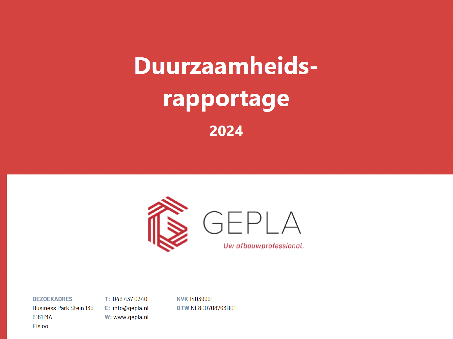 Gepla vindt het belangrijk om op een verantwoorde manier te ondernemen. Daarom hebben we in samenwerking met de Rabobank onze eerste duurzaamheidsrapportage over 2024 opgesteld. Deze vrijwillige CSRD-ESG rapportage geeft inzicht in waar we staan en waar we ons als bedrijf op willen richten. De volgende thema’s staan centraal: