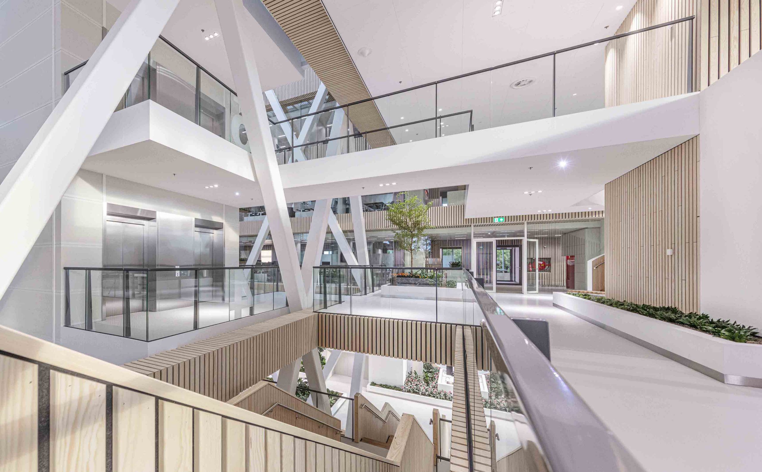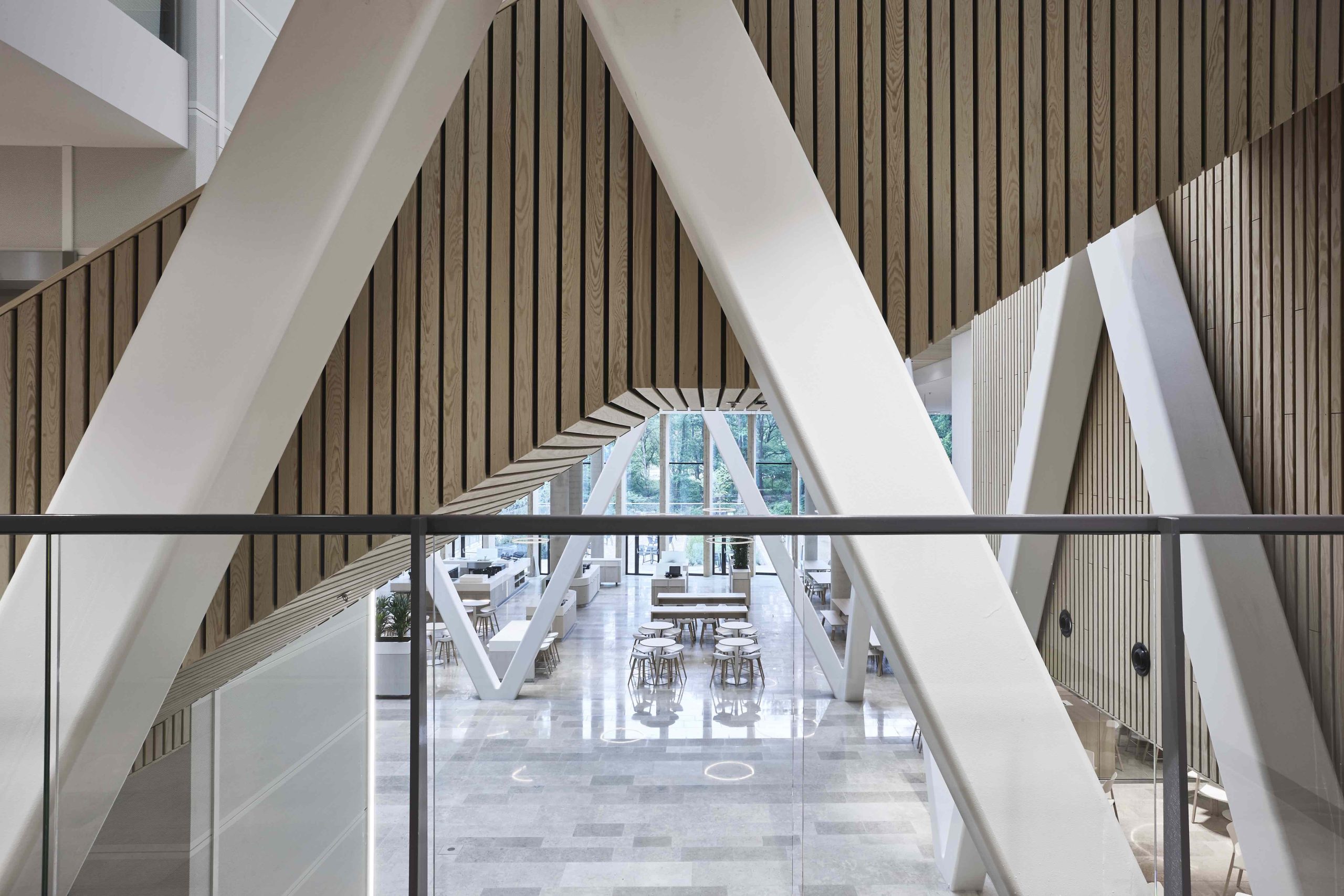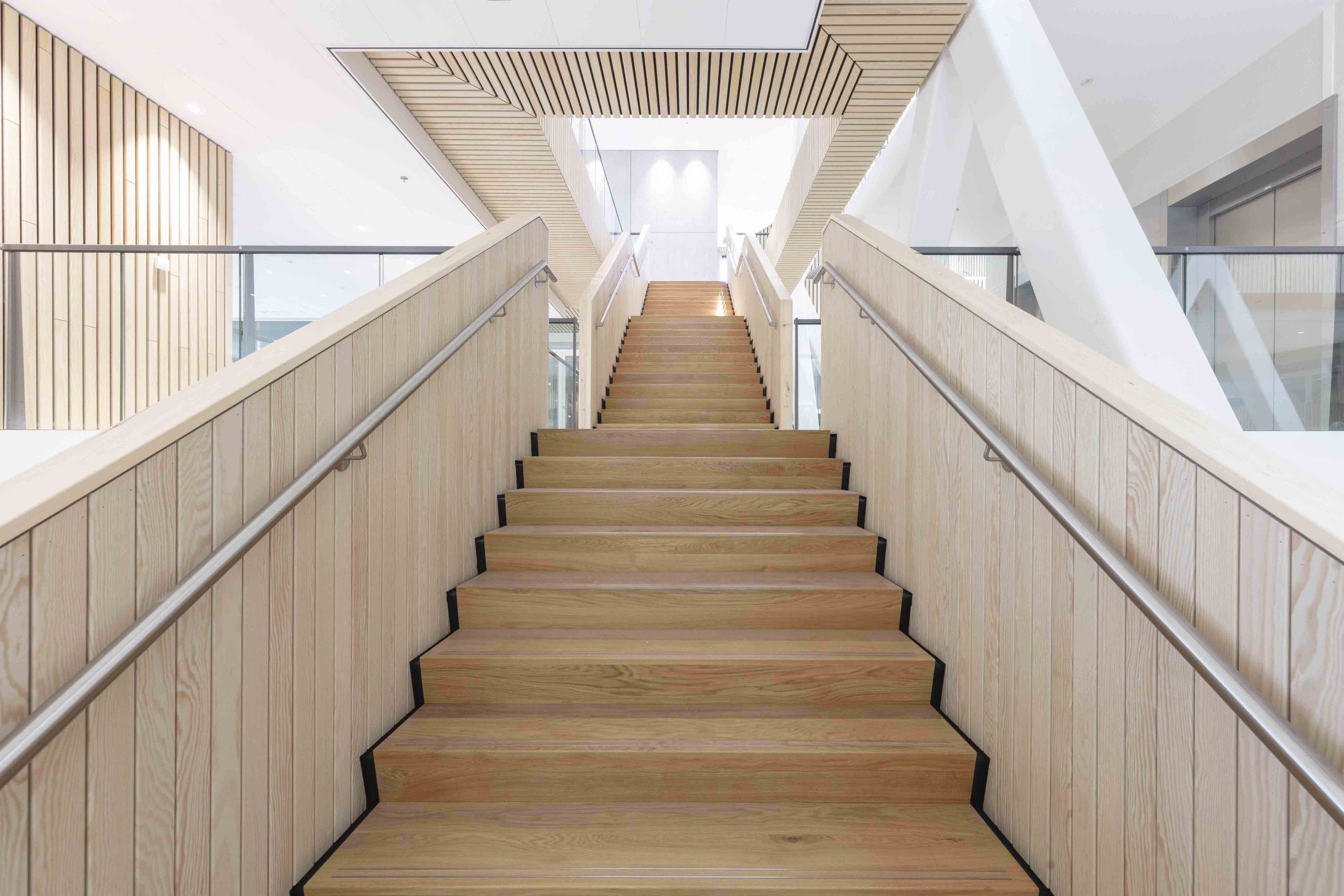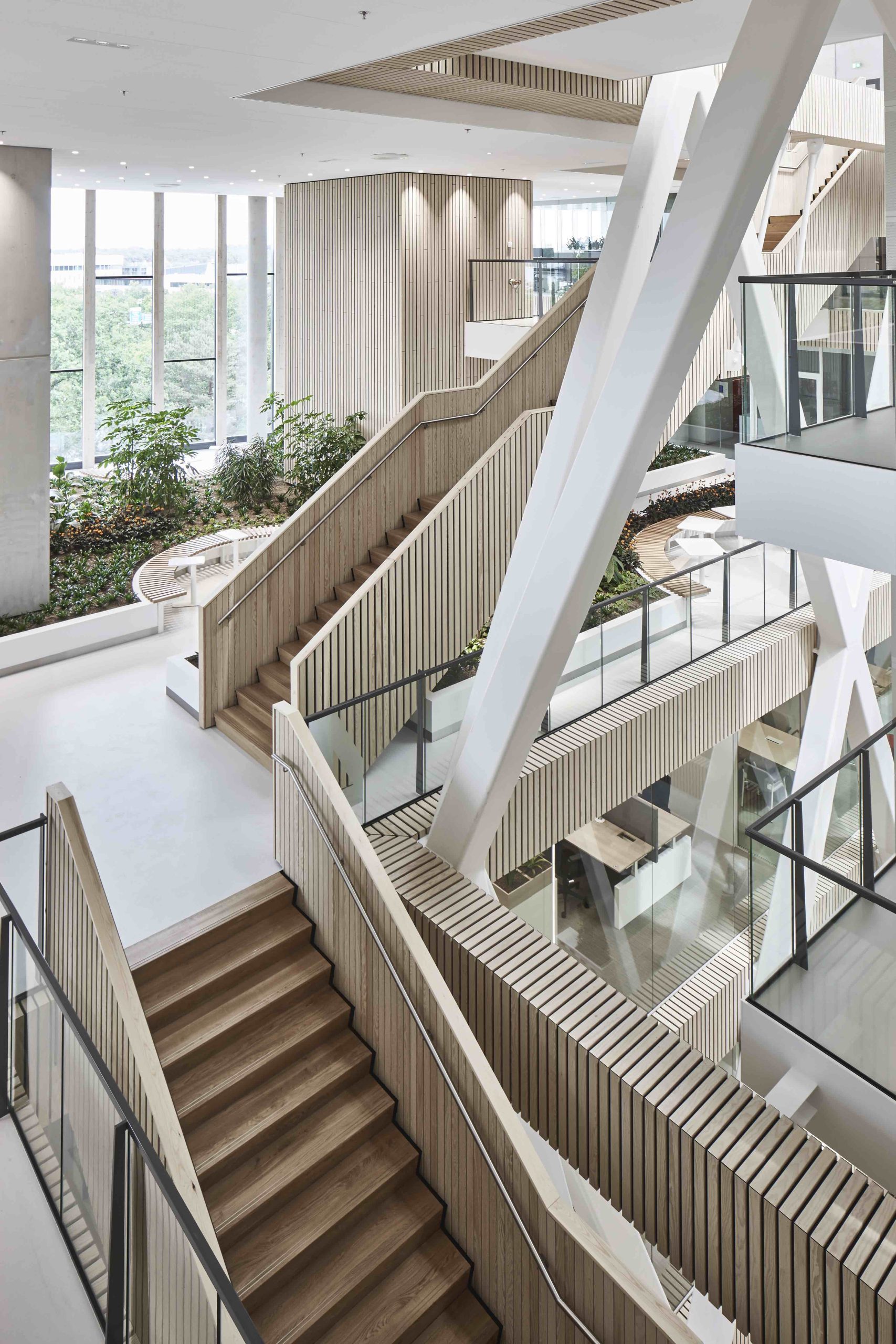 Indrukwekkend in alle opzichten, zo kun je het nieuwe kantoorgebouw van HQ Canon Production Printing het beste omschrijven. In opdracht van BAM Bouw en Techniek – Projecten en in samenwerking met BroekBakema Architecten en M+R Interior Architect heeft Gepla meegebouwd aan dit prachtige project. Maar liefst 55.000 strekkende meter gefineerde houten latten heeft ons team aangebracht als plafonds, wandbekleding, koven en trappen. Tevens hebben we diverse andere plafonds en alle metal-stud wanden gemaakt.