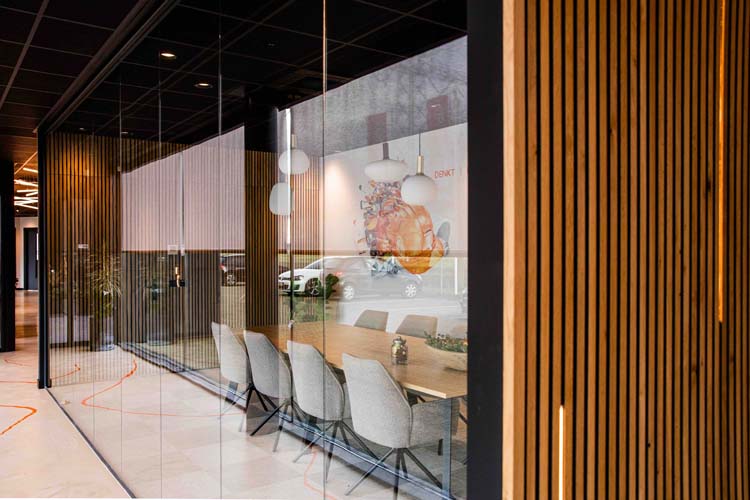 Voor Jac Ruyters Groep in Echt mogen we als afbouwpartner zeer regelmatig meebouwen aan diverse projecten. Onlangs mochten we ook meebouwen aan hun éigen nieuwe kantoorgebouw. Het team van Gepla BV mocht alle glaswanden, plafonds, houten wandbekledingen en metal stud wanden verzorgen.